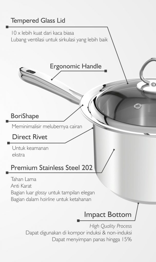 Borish® Beinz dibuat dari material berkualitas dengan teknologi produksi terkini sehingga menghasilkan produk berkualitas tinggi dan menjamin kepuasan anda dalam berkreasi untuk menghasilkan masakan yang berkualitas. Didukung desain yang elegan dan high class semakin menyempurnakan penampilan dapur anda.