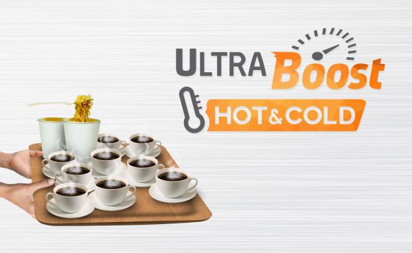 Dispenser yang higienis dan didukung teknologi ultraboost yang dapat memanaskan air dan mendinginkan air lebih cepat.